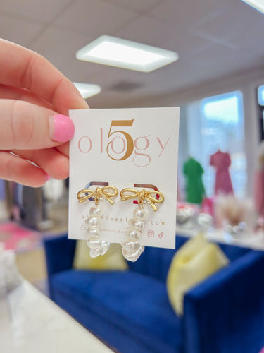 Omega Chain Bow & Pearl Earring