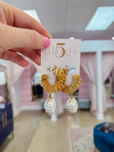 Wave Metal & Pearl Dangle Hoop