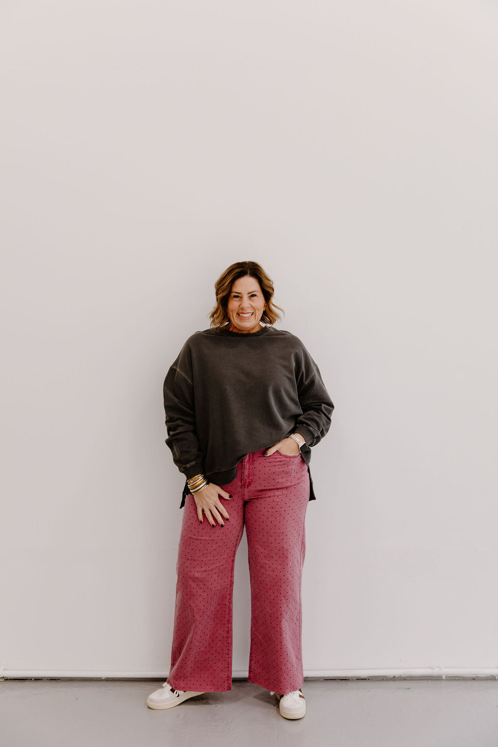 Polka Dot Wash Jean - Mulberry
