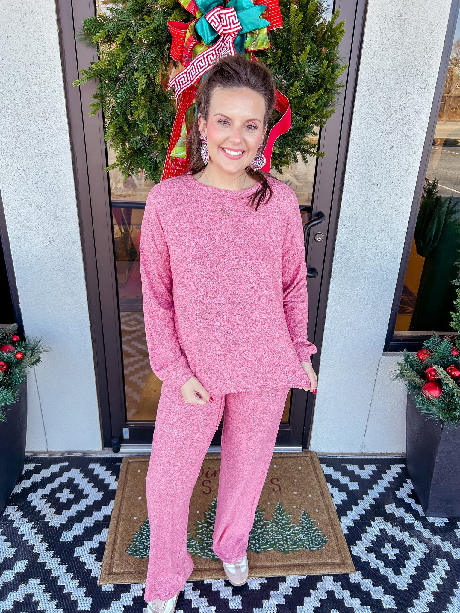 • Load image into Gallery viewer, Butter Melange Long Sleeve Set - Red