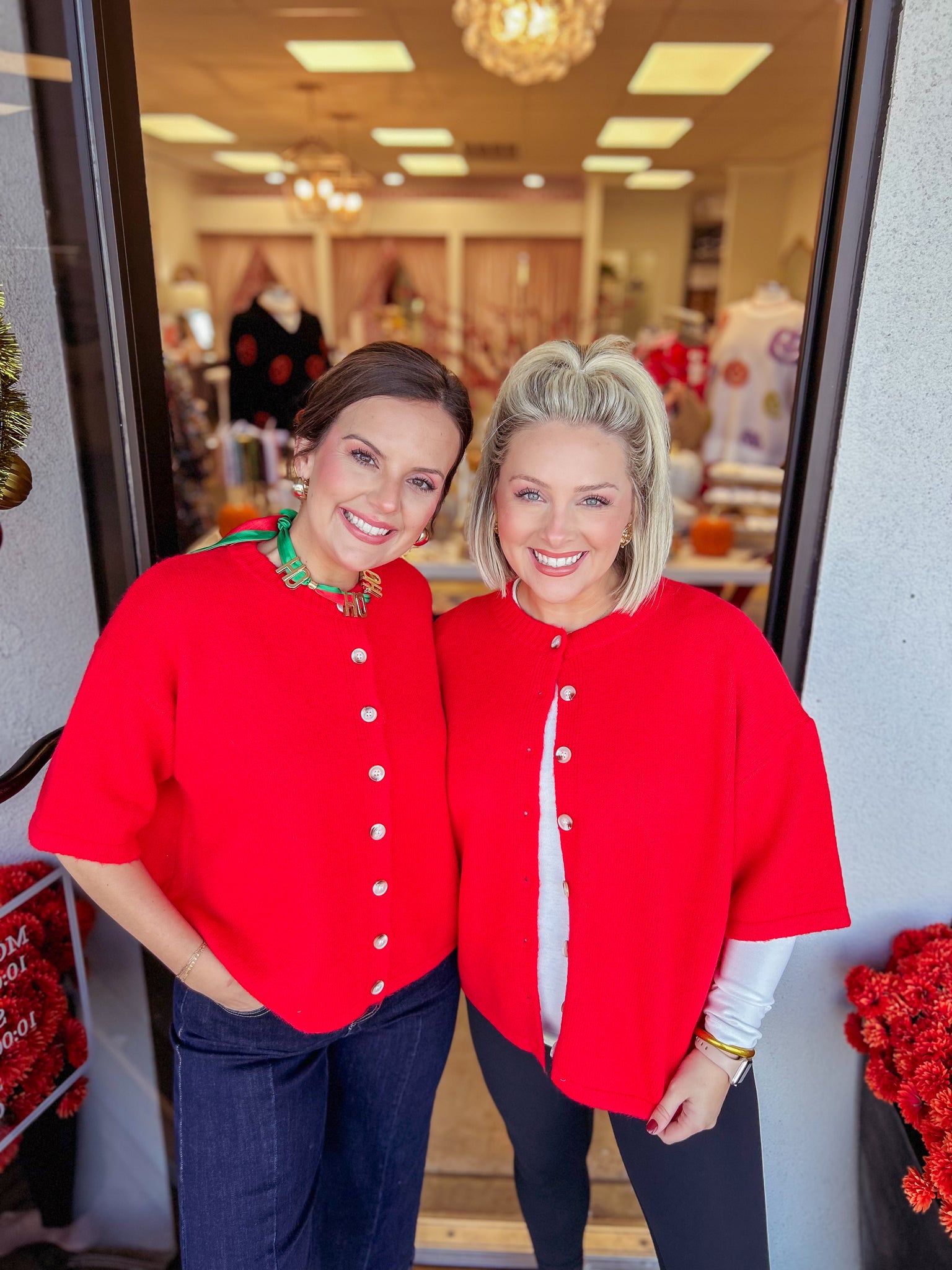 Haleigh is wearing a small and Erin sized up to a medium!