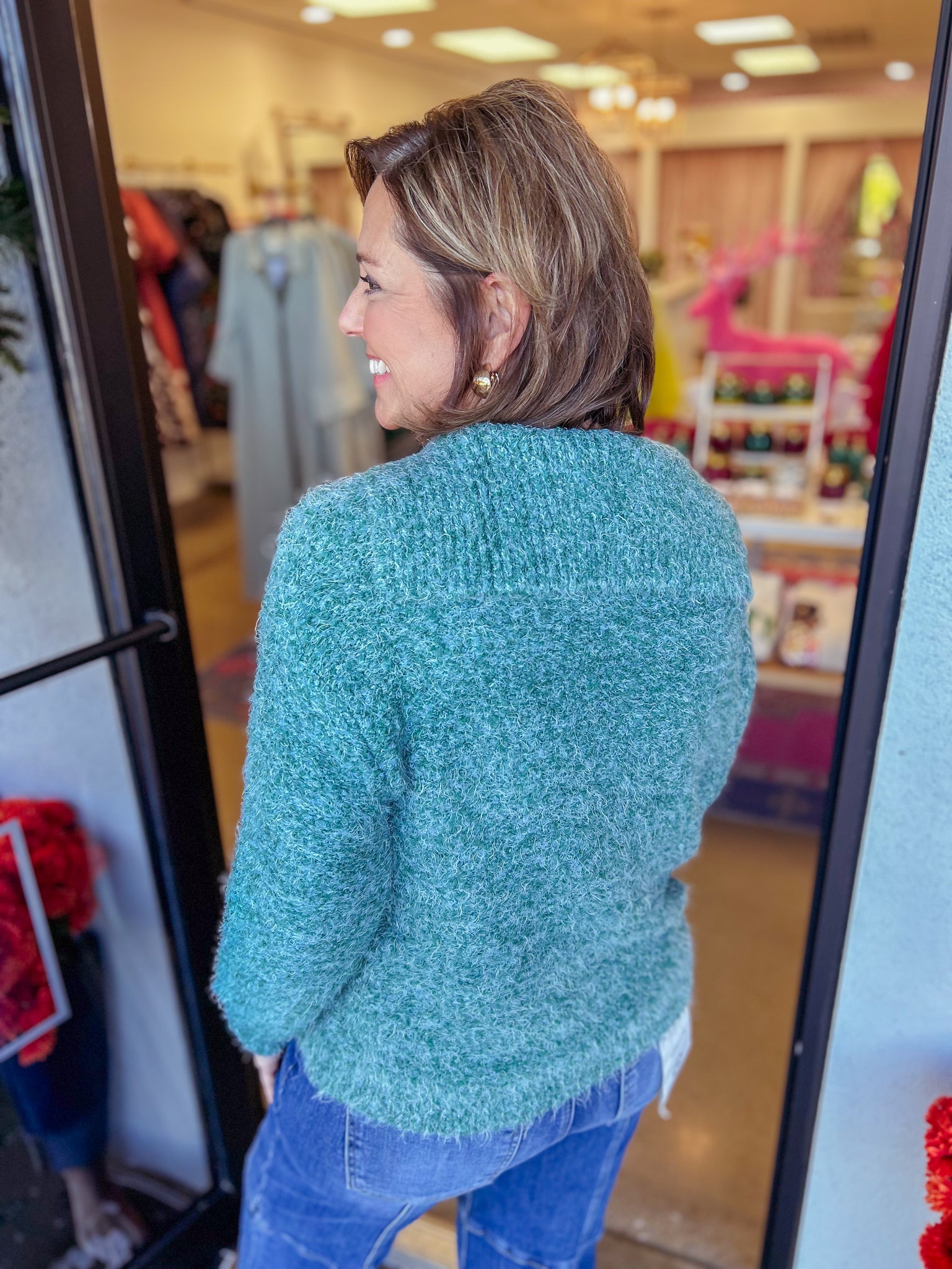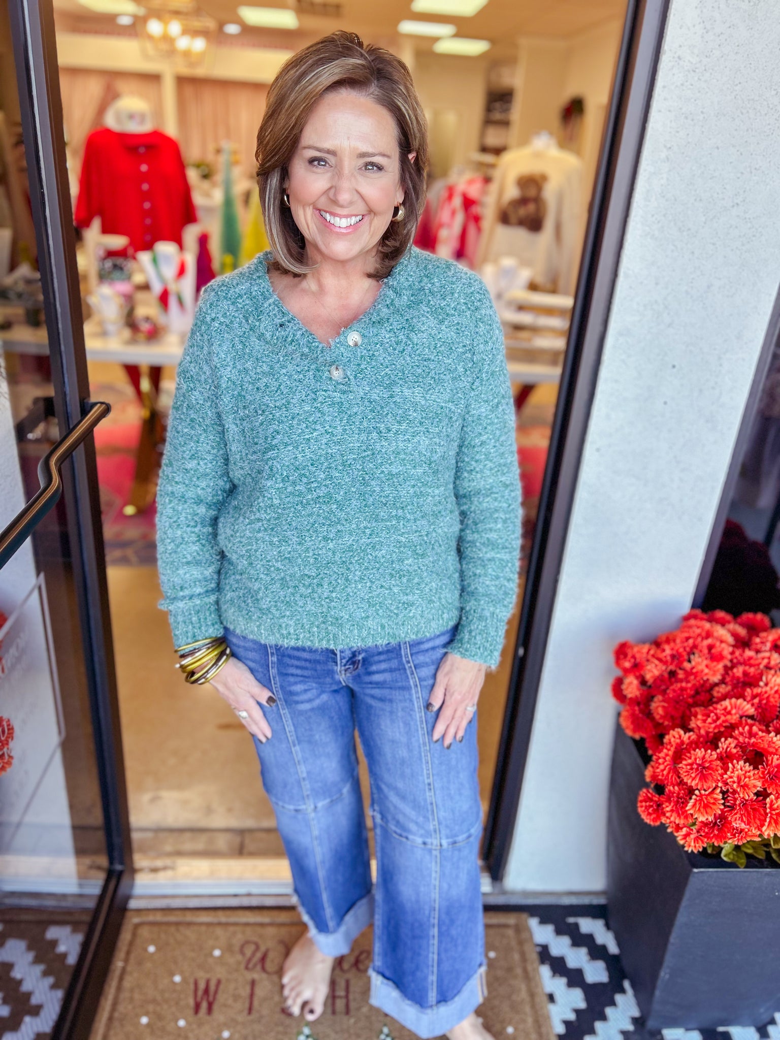 Fuzzy Half Button Sweater