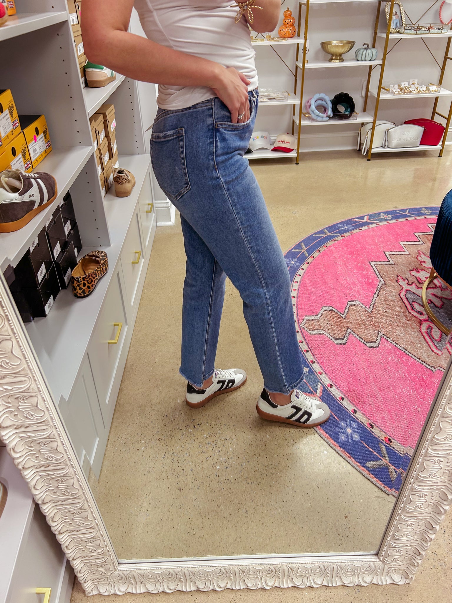 Haleigh’s wearing a 27/5! If between sizes, go up